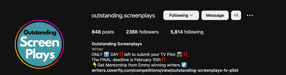 Outstanding Screenplays: https://www.instagram.com/outstanding.screenplays/ |